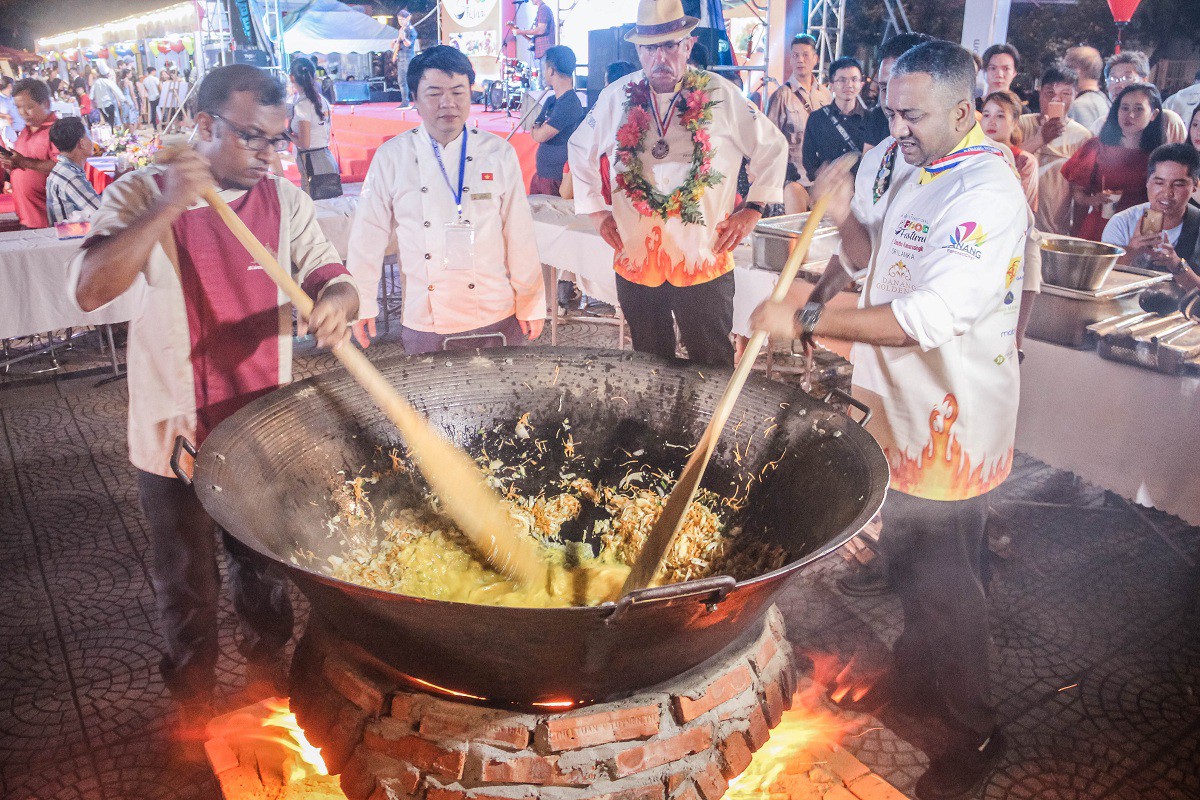 ???The most special at the Da Nang International Food Festival 2019 is that every night the President of the World Chef Association will select one chef from that country to perform and cook. In the “Big Dish” area (giant pot). Besides, along with many street art programs, the carnival of food and drink, exchange – sharing culinary experiences with tourist students, giving gifts to the children at the Agent Orange , tourist photo display area and some check-in points …