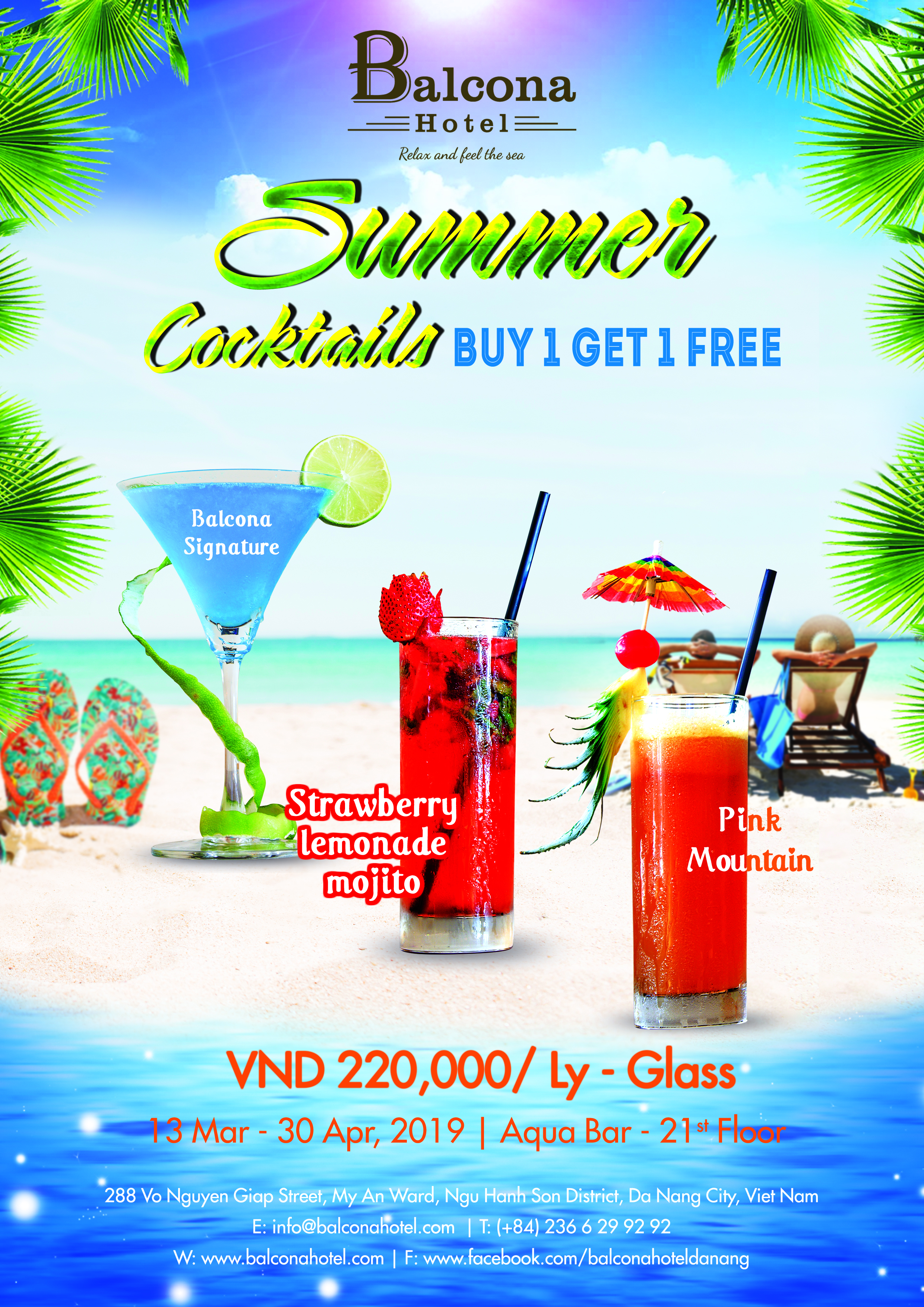 ? ? Lắng nghe tiếng sóng biển rì rào, cảm nhận làn nước hồ bơi mát lạnh, đắm chìm trong hương vị dịu ngọt và đặc trưng của miền nhiệt đới từ Aqua Bar – tầng 21 khách sạn Balcona Đà Nẵng.